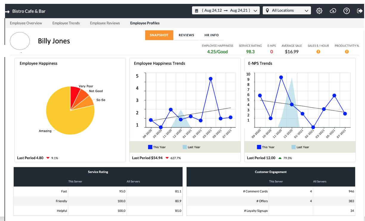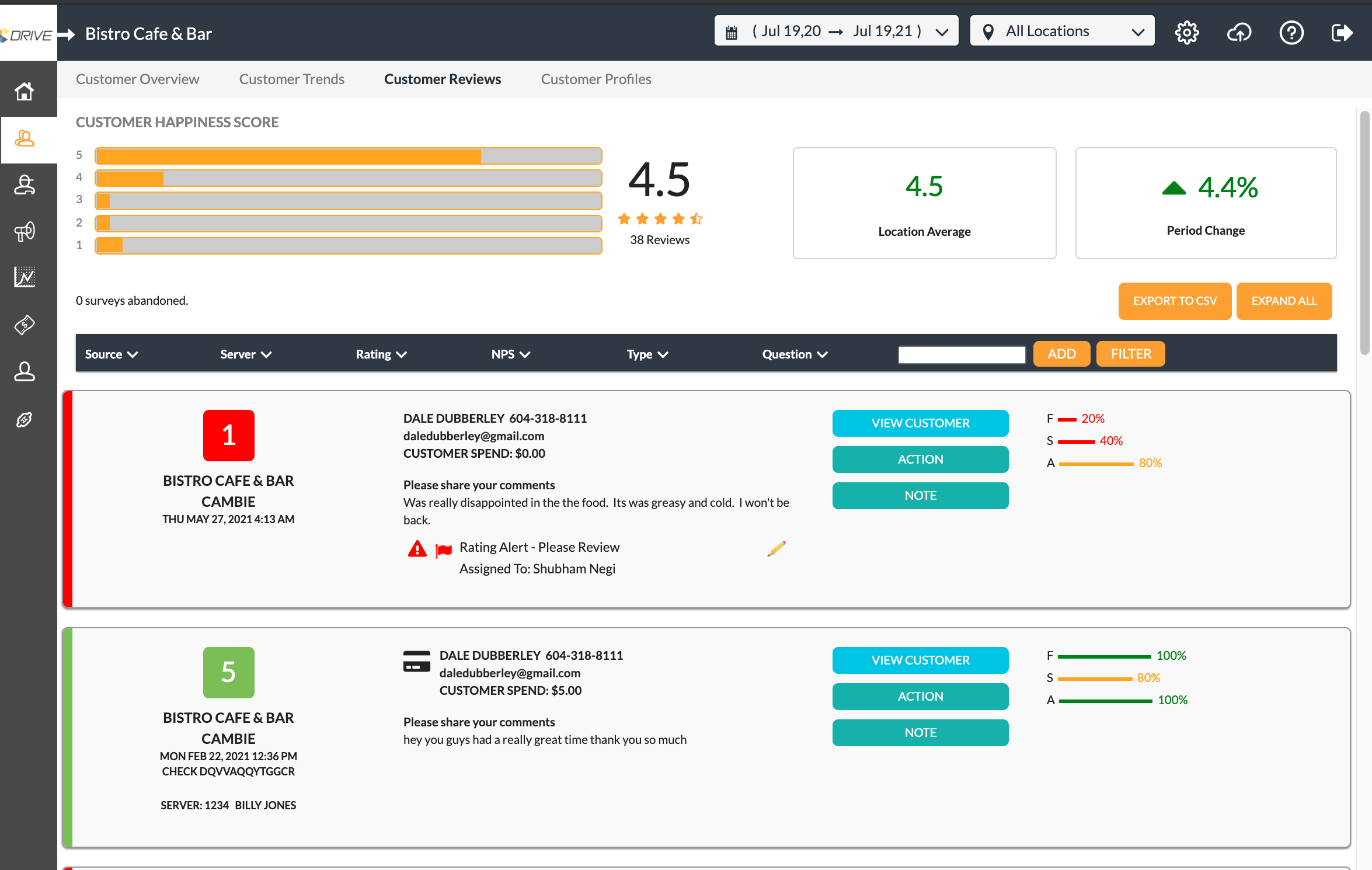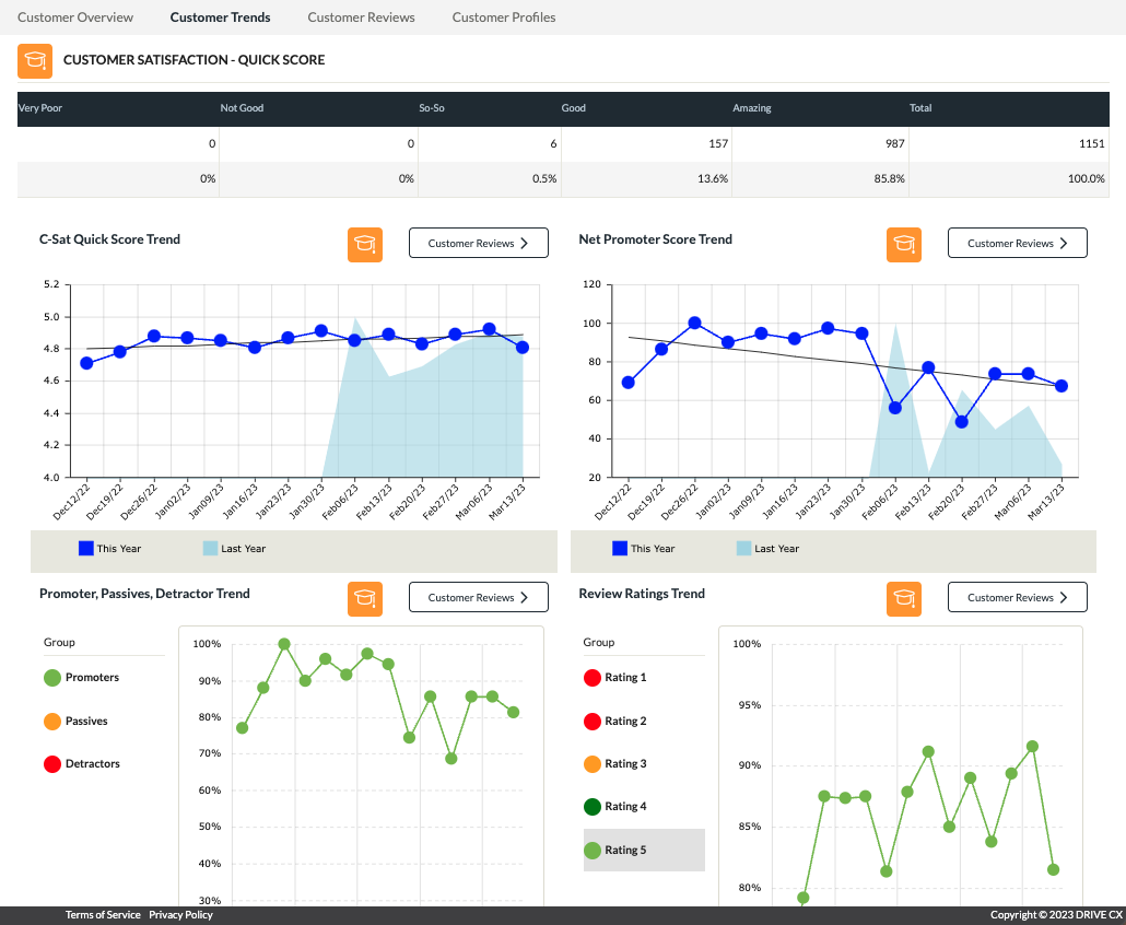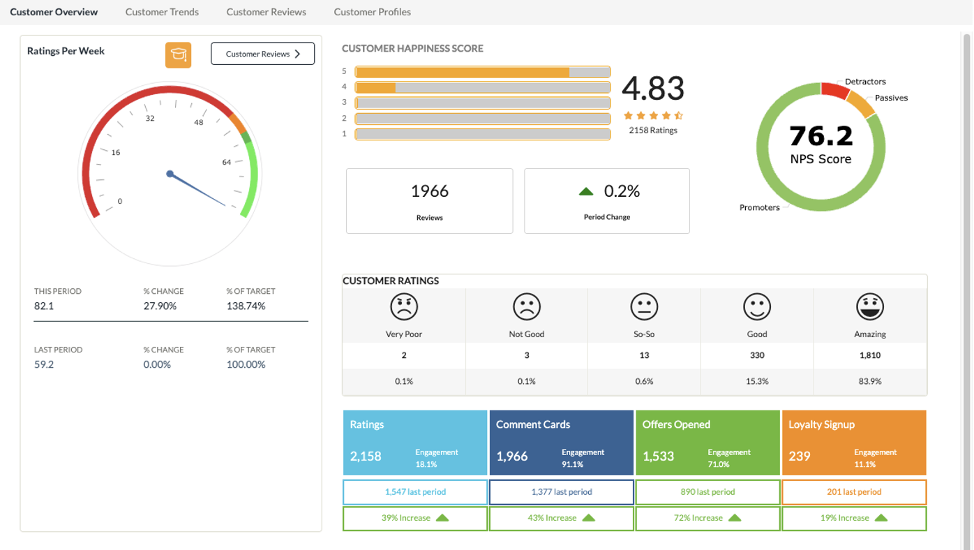 Learn what your customers love about you and what they want you to fix. Know how to improve your “customer happiness” rating and create brand loyalty. Get Customer ratings and engagement overview, see reviews, track customer rating trends, see customer profiles.