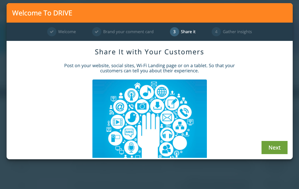 Create your custom branded comment card in minutes. All you do is drag and drop your logo and images, choose your colors, choose your questions and get comment card URL. Share your comment card link on social and websites and Keap automations. Get your weekly customer happiness email. See customer overview, trend and detailed dashboard reports. Find out what your customers really think!