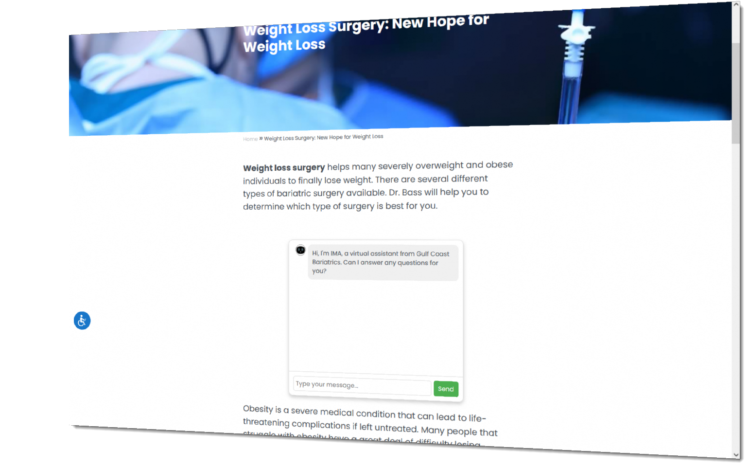 IMA is a HIPAA-compliant, advanced conversational AI with impressive natural language processing and understanding. IMA is programmed to be helpful and informative in its interactions while displaying high accuracy and safety. Unlike most website chatbots, IMA understands both the content and intent of your potential clients' typed content. There are no preconfigured conversation paths or algorithms; it is just natural conversation as you might have with a human. Trained in the details of your medical practice and already possessing a vast medical knowledge base, IMA can answer even the most intricate and nuanced questions quickly, accurately, and, most importantly - safely. IMA communicates with your website visitors with empathy and accuracy, building trust and guiding leads toward solutions and services you provide. With Ima you can : - Answer questions related to your medical practice and services - Collect lead information for additional follow-up - Show videos and provide additional resources to prospects or patients. - Guide prospects through your intake process. - Send leads to your customer relationship management database. - Reduce staff time handling inquiries. - Create a consistent, accurate, and trusted source for information.